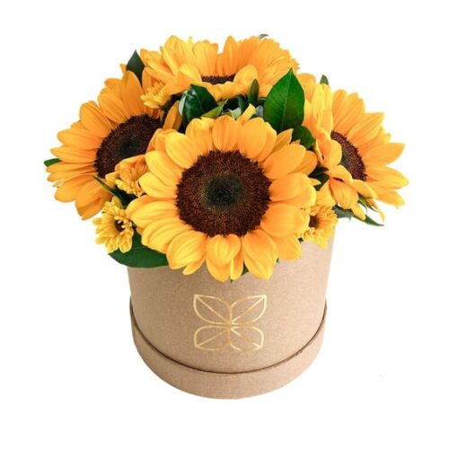 Ramo de girasoles en delicada envoltura. Incluye dedicatoria.